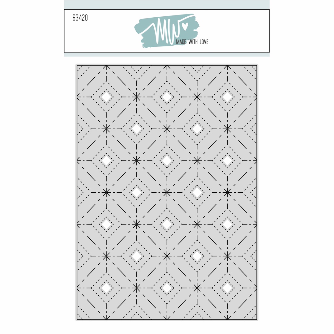 Squares background fra Made With Love indeholder 1 die I fuld A6 størrelse, der skærer en hel baggrund med de fineste ruder syninger, der giver en fed effekt og tekstur til dit karton. Brug den også I kombination med andre dies for at give dem synings effekten.