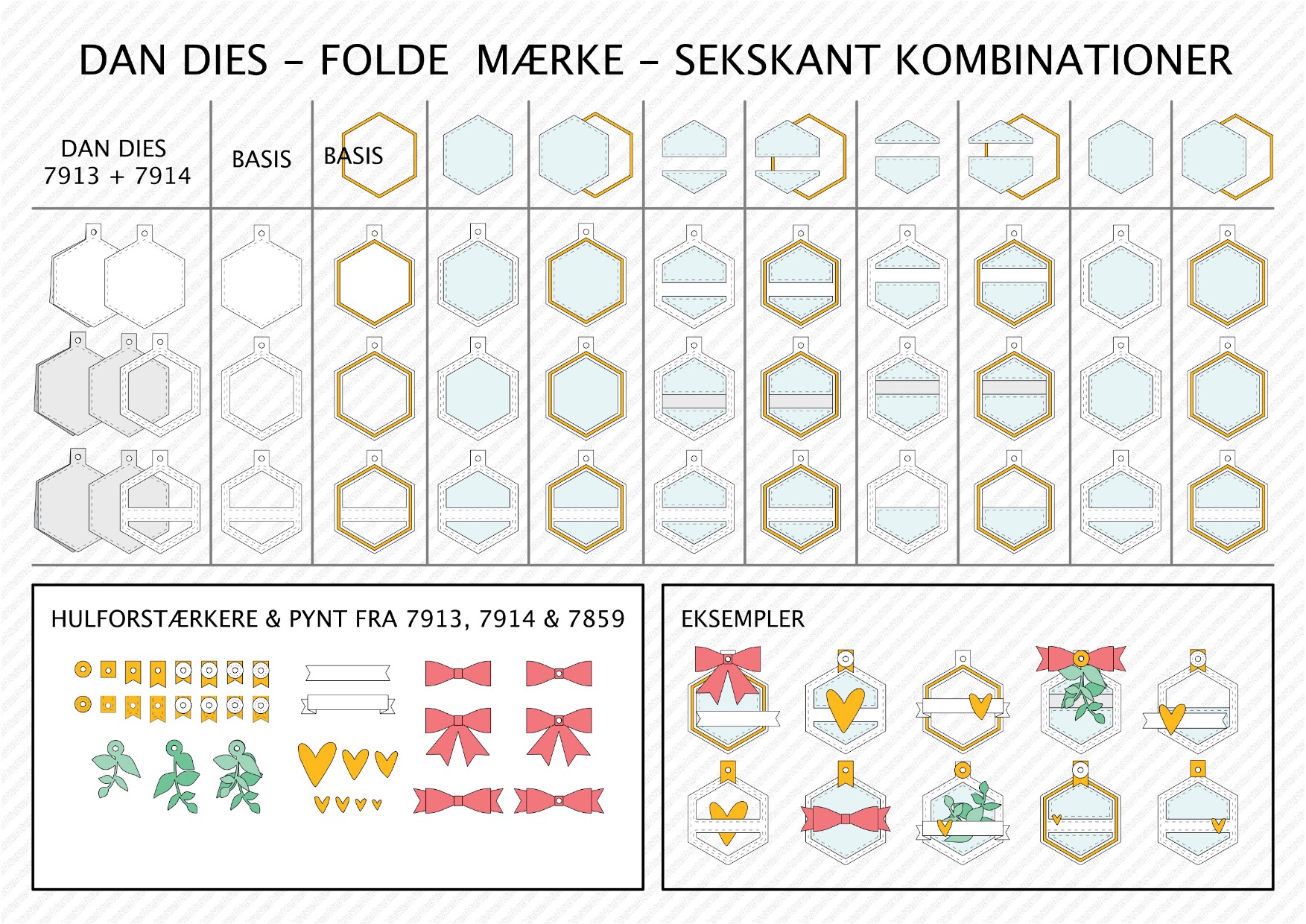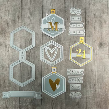Foldemærke sekskant sættet fra Dan Dies indeholder mange forskellige dele til at lave søde foldede til og fra kort.