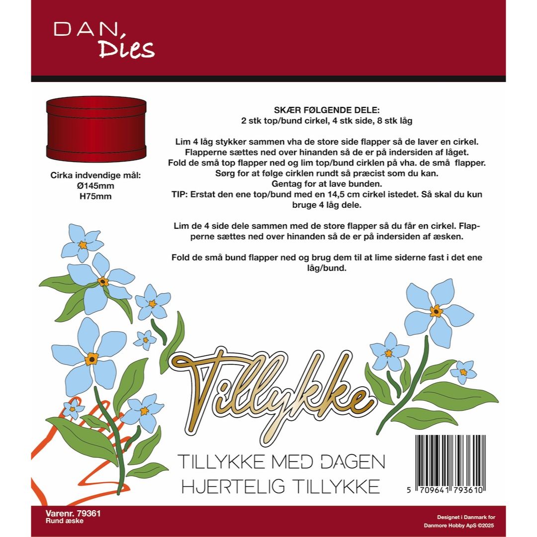 Rund æske fra Dan Dies indeholder 3 dies der bruges til at lave en stor rund æske.
