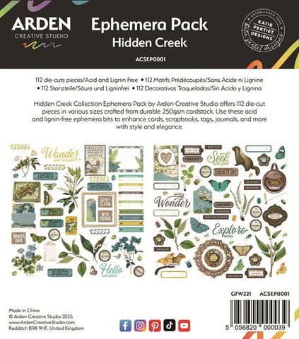 ACSEP0001 Arden Creative Studio Ephemera Pack/Die Cuts, Hidden Creek